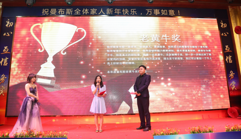 2019年曼布斯奋力拼搏,取得了骄人的成绩,涌现出了一大批先进集体和个人,为提升士气,进一步激发和调动广大员工的工作热情,引导全体曼布斯人积极践行核心价值观,对2019年度先进集体和优秀个人进行表彰并颁奖。